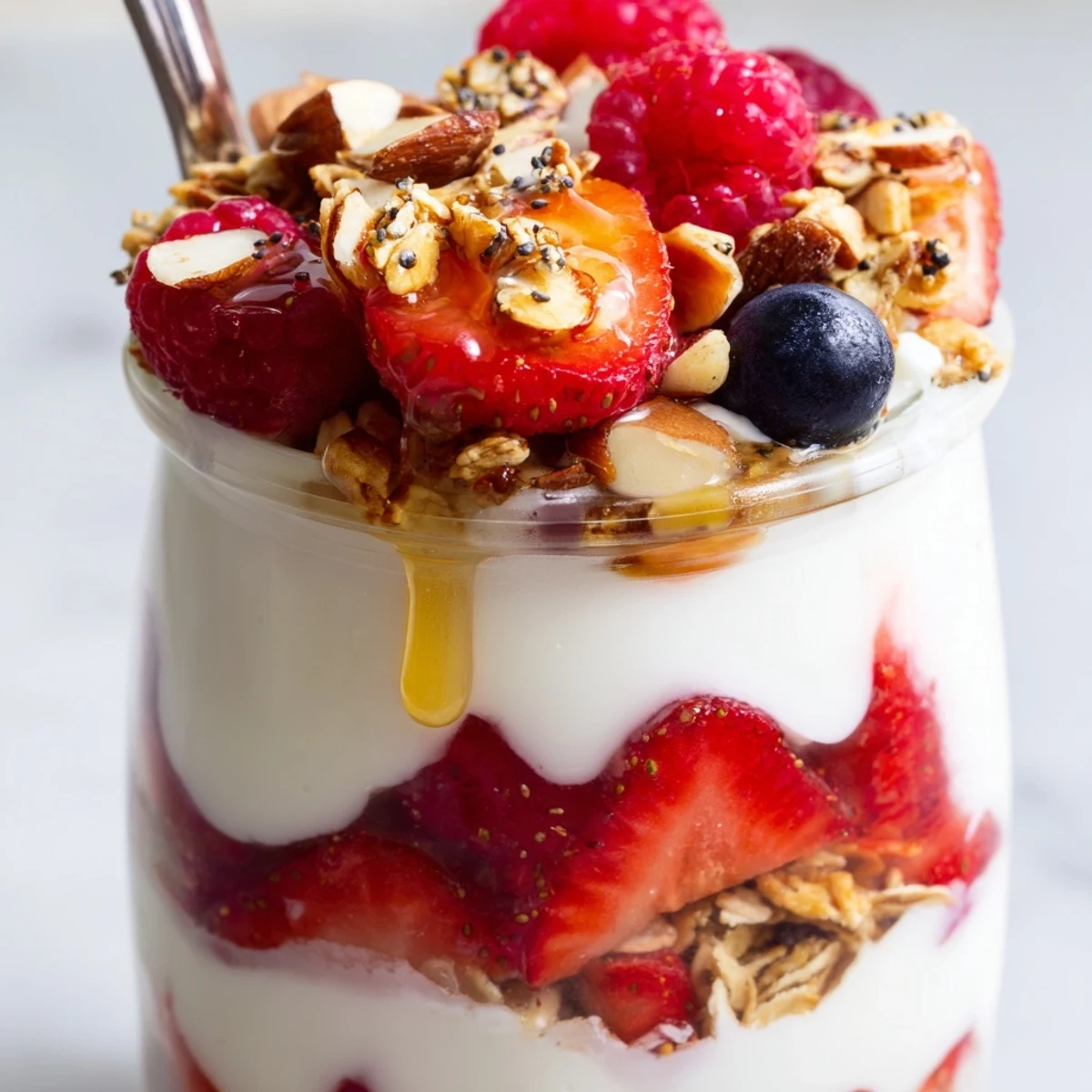 Layer yogurt, honey, berries, and granola in clear glasses to show off the beautiful stripes. Add chopped nuts, chia seeds, or lemon zest for extra flair. Serve immediately for maximum crunch or chill briefly for softer layers.