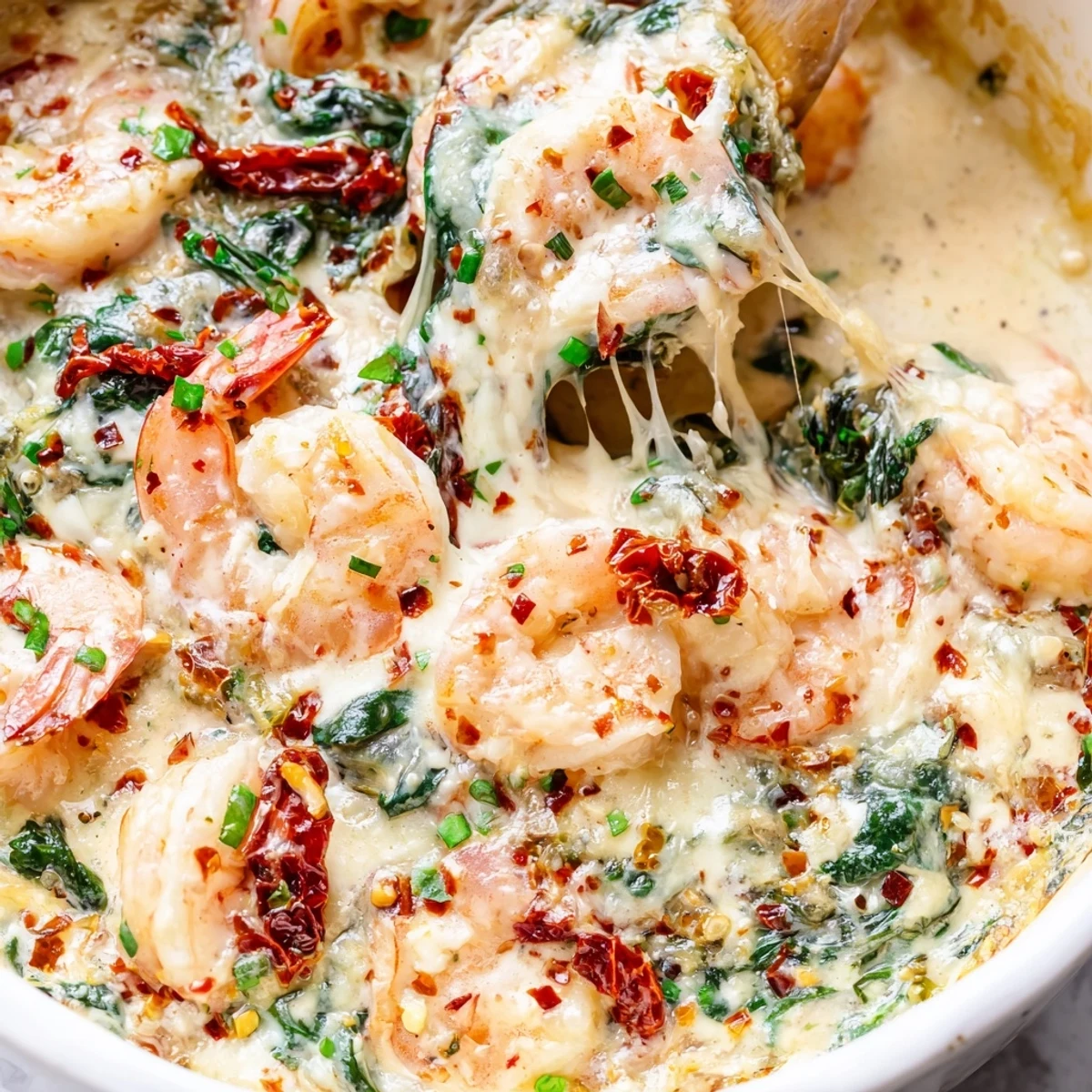 The heavy cream creates a luscious sauce while parmesan and mozzarella add irresistible depth. Sun-dried tomatoes provide concentrated sweetness that balances the rich creaminess, and red pepper flakes offer optional heat.