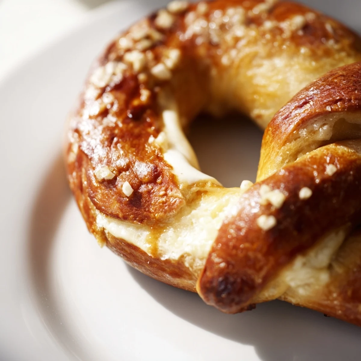 These chewy, golden brown pretzels feature a rich mozzarella center that melts beautifully during baking. The dough achieves its signature texture through a traditional baking soda bath, creating that distinctive pretzel flavor and deep amber color. Each pretzel takes about 30 seconds to poach before baking, resulting in a perfectly chewy exterior with a soft, cheesy interior.