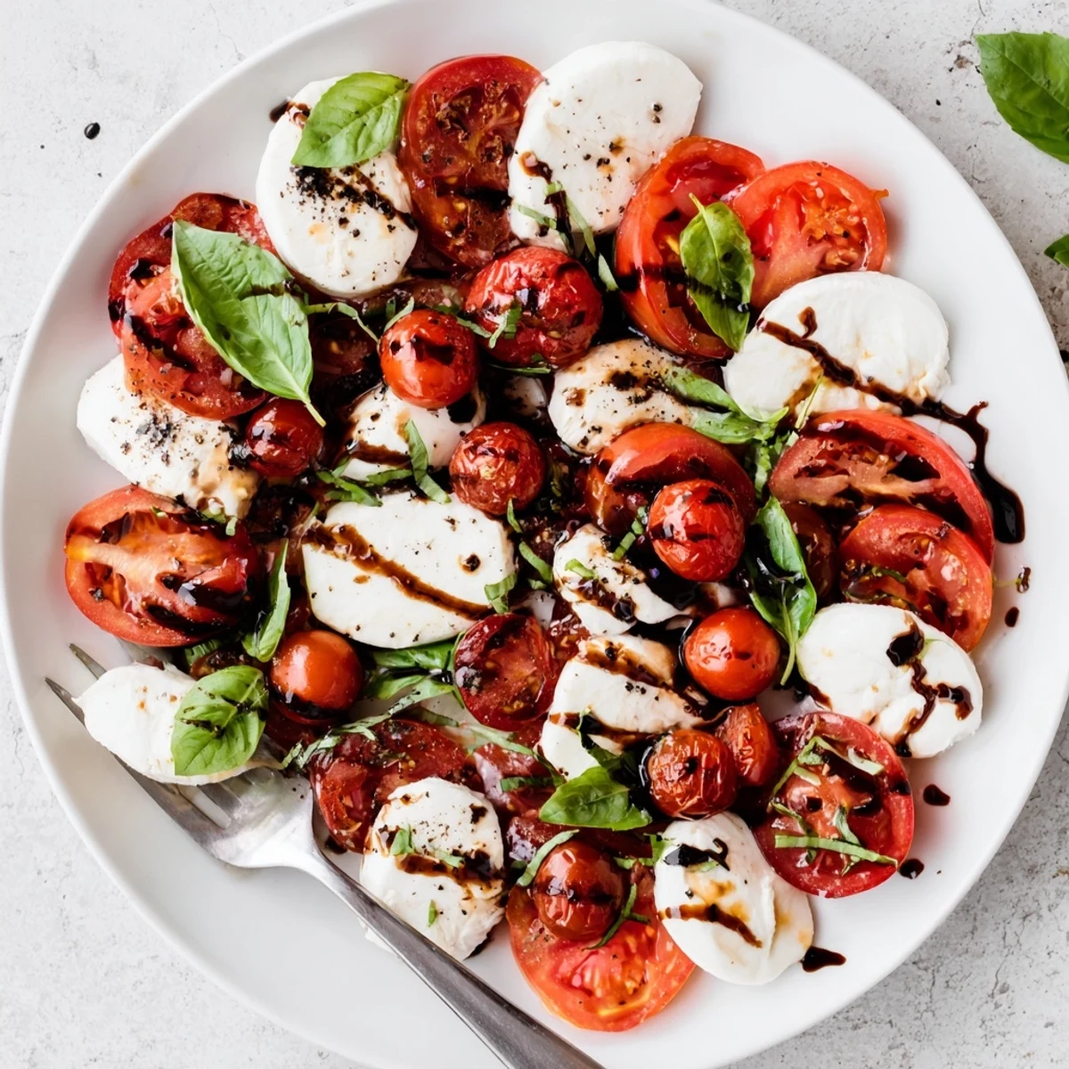 True balsamic vinegar is wonderful, but for this recipe I actually prefer a glaze because it clings beautifully to the tomatoes and mozzarella. You can buy it or reduce regular balsamic in a pan until it coats the back of a spoon. The sweetness balances the acidity of the tomatoes in a way plain vinegar never quite achieves.