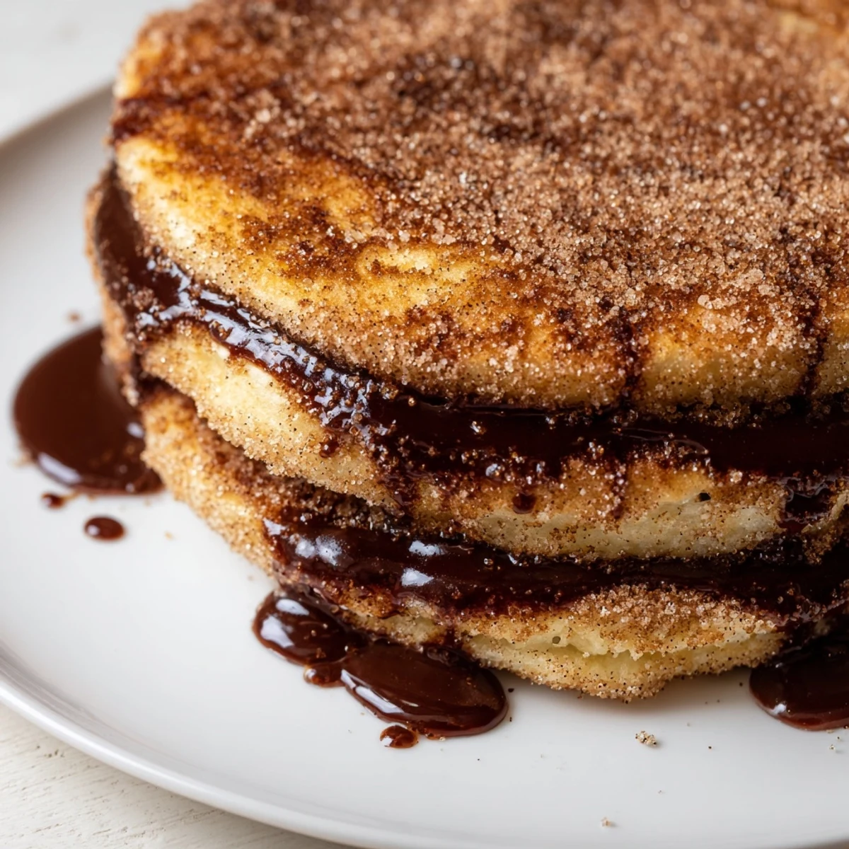 These Spanish-inspired pancakes combine the fluffy texture of classic breakfast stacks with the beloved flavors of traditional churros. The batter is infused with ground cinnamon, then cooked until golden and dusted generously with cinnamon sugar while still warm. A velvety dark chocolate sauce adds the perfect finishing touch, making this dish ideal for weekend brunches or special dessert occasions.